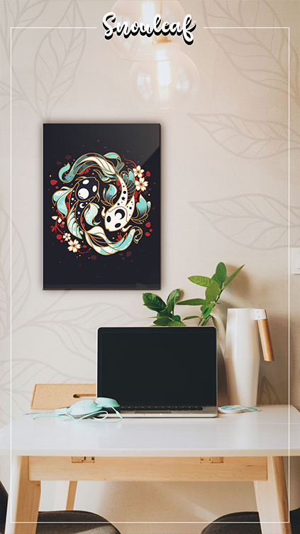 aquatic, fish, japan, moon, stars, koi, japanese, Japan, balance, tranquility, carp, calm, otaku, pond, yin, yang, good, evil, light, dark, zen