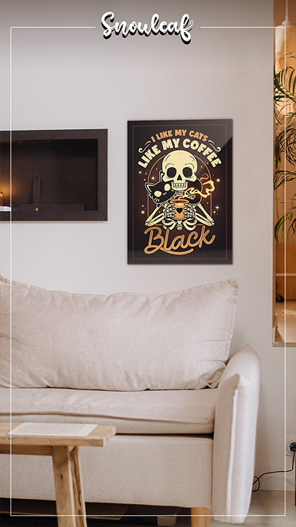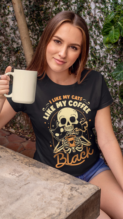 cute, kitty, kitten, cat, ladies, skeleton, skull, gothic, coffee, black, caffeine, cappuccino, humor, funny, quote, spooky, bones, espresso, latte, mocha, dark, love coffee, drink