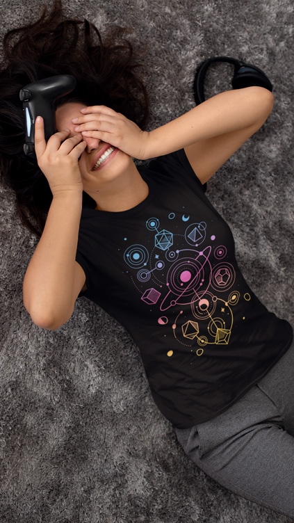 dice, tabletop, rpg, roleplay, roleplayer, role, player, gamer, lines, line art, lineart, space, cosmic, esoteric, mystical, planets, stars, moon, sun, d20, dnd, dungeons, and, dragons, D&D, geometry, geometric, solar, system, dungeon master, rainbow, colorful, gradient, science