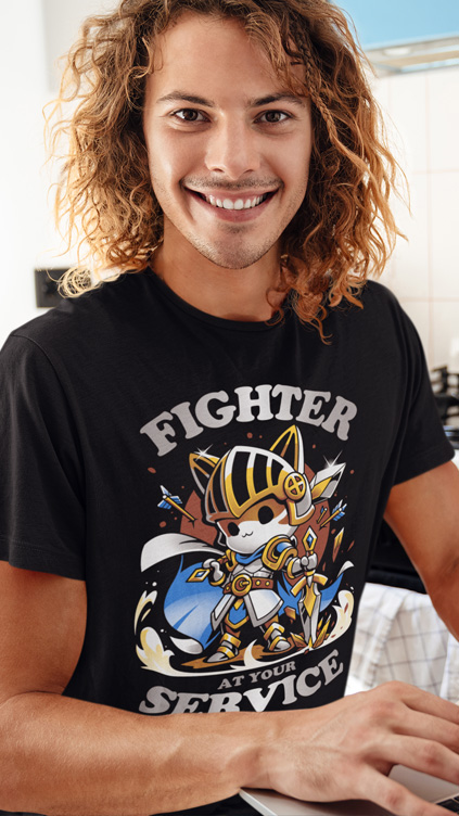 fighter, warrior, knight, medieval, rpg, class, classes, role, player, roleplayer, playing, game, cute, cat, kawaii, gamer, fantasy, gaming, dungeons, and dragons, dnd, D&D, at your, service, tabletop, kitten, kitty, geek, nerd