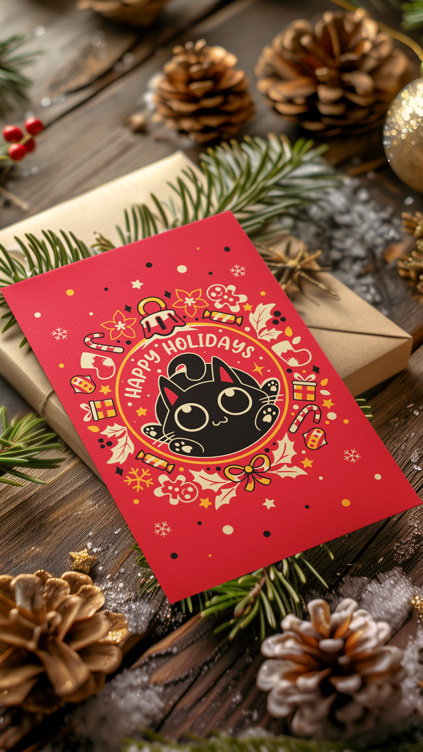 black cat, cute, meow, Merry, Christmas, x-mas, presents, funny, kawaii, kitten, kitty, xmas, jingle, bells, festive, gingerbread, man, candy, cane, happy holidays, joy