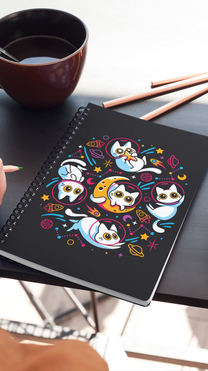 white cat, kitten, kitties, kitty, kawaii, cute animal, scifi, sci-fi, sci fi, science fiction, astronaut, galaxy, universe, space, neon colors, astronomy, planets, moon, astronaut, universe, rainbow color, stars