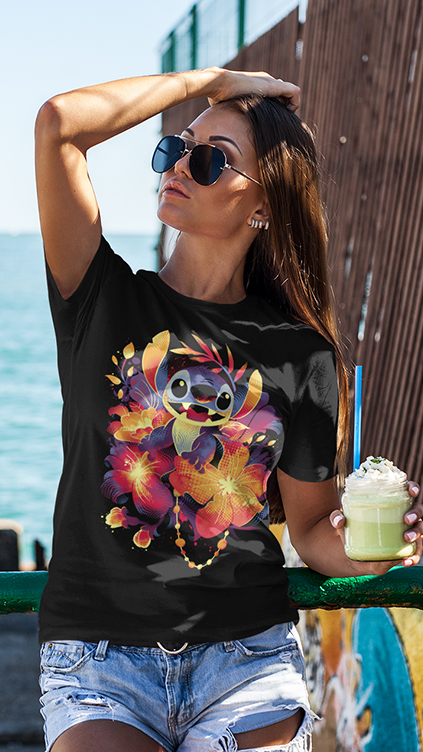 stitch, alien, colorful, cute, experiment, 626, family, flowers, happy, hawaii, holiday, summer, monster, ohana