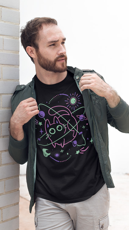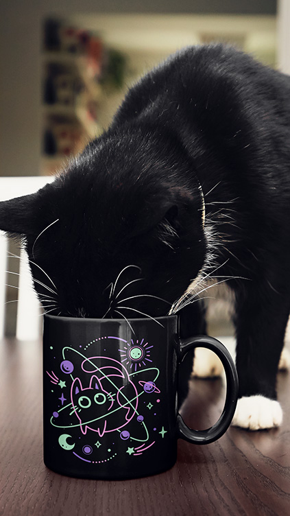cute, kawaii, animal, planet, stars, universe, cat, kitty, black cat, fat, chonk, cosmos, galaxy, funny, humor, kitty, neon colors, orbit, space, science, line art, lineart