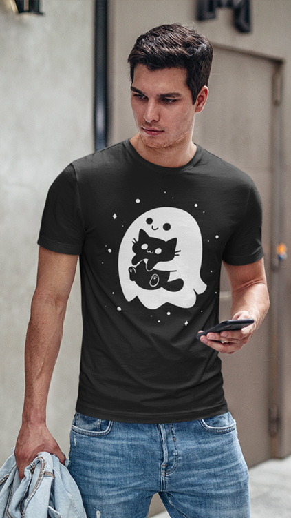 ghost, sci-fi, halloween, black cat, kitten, kitty, cute, spooky, paranormal, kawaii, creepy, happy, boo, autumn, fall, trick, or treat, horror, spirit, phantom, funny, black and white, minimalism