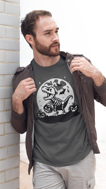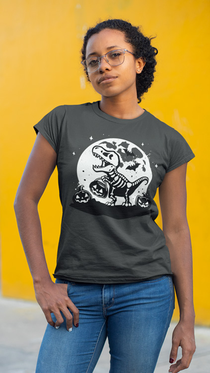 T-rex, t rex, trex, dinosaur, dino, jurassic, funny, halloween, spooky, dinos, bones, prehistoric, horror, gothic, tyrannosaurus, moon, bats, black, white, pumpkins, fall, autumn, season, skeleton