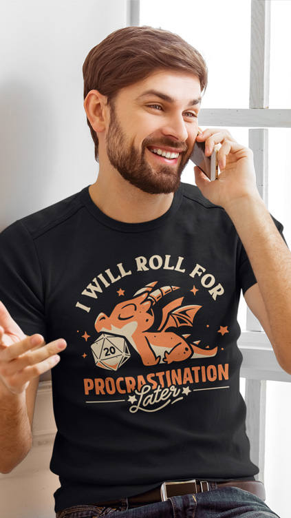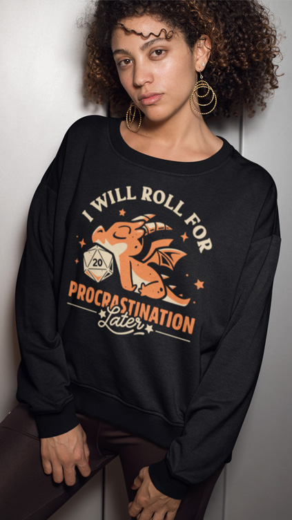 dragon, d20, dungeon master, cute, kawaii, rpg, role, player, roleplayer, playing, game, gamer, fantasy, gaming, dungeons, and dragons, dnd, D&D, tabletop, geek, nerd, dice set, lazy, procrastination, funny, humor