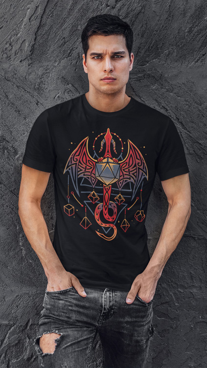 dragon, d20, dungeon master, geometric, lines, line art, lineart, minimalist, rpg, role, player, roleplayer, playing, game, gamer, fantasy, gaming, dungeons, and dragons, dnd, D&D, tabletop, geek, nerd, tribal, celtic, dice set